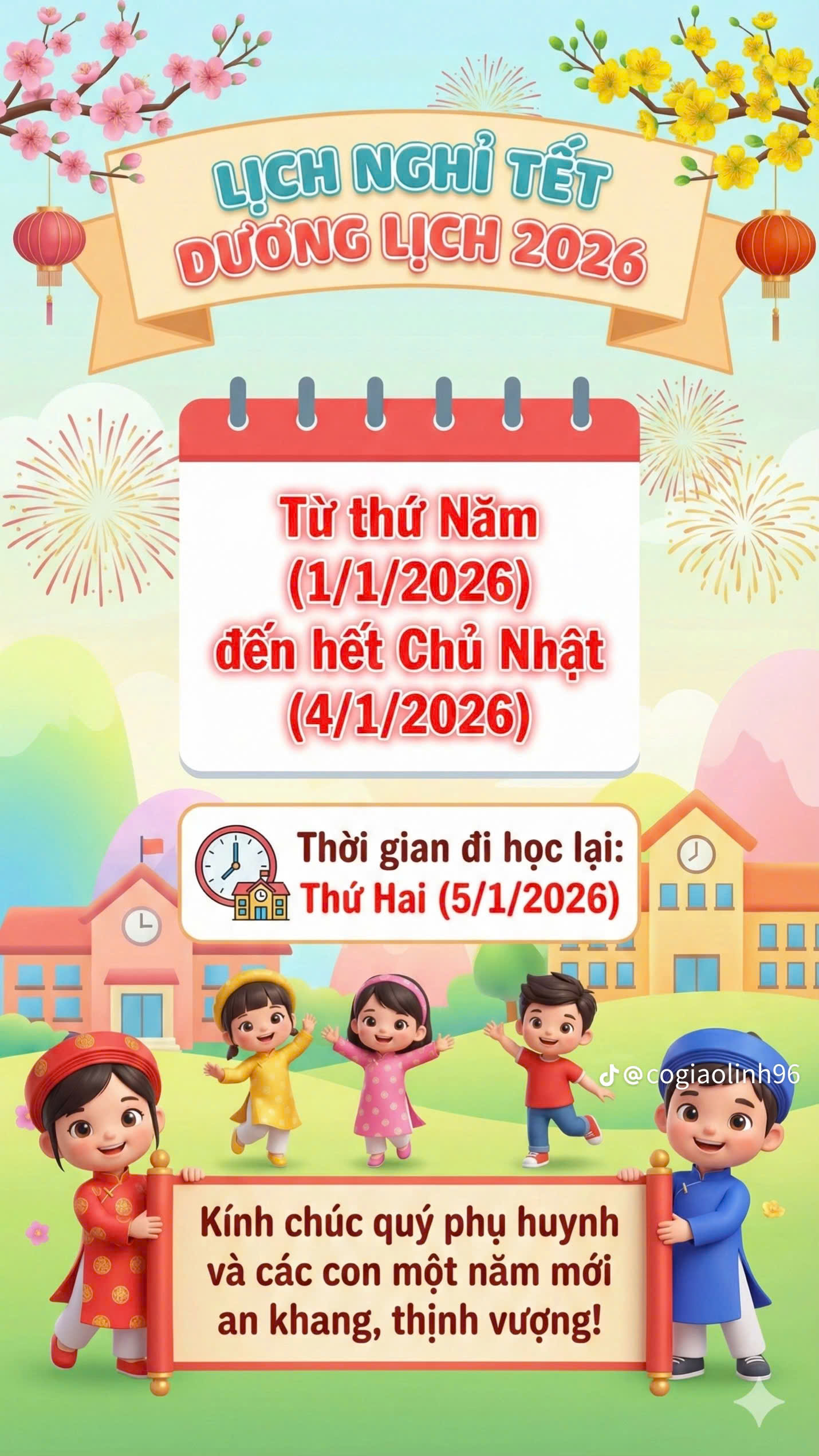 - Học sinh Hà Nội nghỉ Tết Dương lịch 2026 nhiều nhất 4 ngàyon 29/12/2025