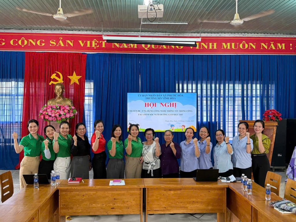 Sáng ngày 26/12/2025, Trường MN Vĩnh Hòa tổ chức sinh hoạt chuyên đề “Ứng dụng công nghệ thông tin trong tổ chức hoạt động giáo
