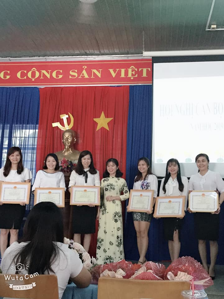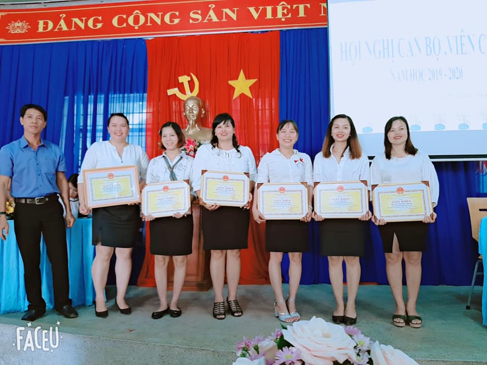 Trong hội nghị CBVC còn công bố các quyết định khen thưởng tập thể, cá nhân đạt những thành tích xuất sắc trong năm học 2018 – 2019 : Trường đạt tập thể LĐTT, 6 chiến sĩ thi đua cơ sở, 6 GV được UBND Huyện khen…..