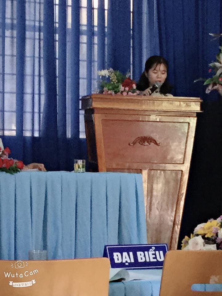 Cô Hân đọc báo cáo kết quả thực hiện nhiêm vụ năm học 2019 – 2020 và phương hướng nhiệm vụ năm học mới