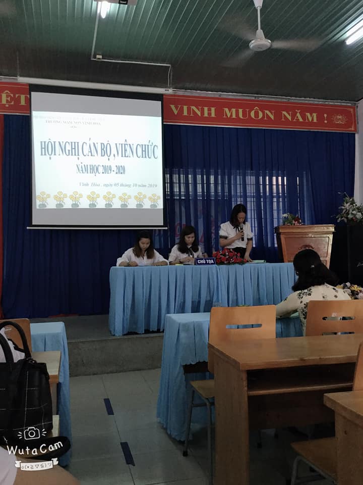 Để phát động phong trào thi đua hai tốt trong toàn đơn vị, lập nhiều thành tích trong năm học mới, năm học 2019 – 2020. Hôm nay ngày 5/10/2019 toàn thể cán bộ viên chức trường mầm non vĩnh hòa tổ chức hội nghị cán bộ viên chức đầu năm học mới để bàn bạc tìm ra các biện pháp có hiệu quả để hoàn thành tốt kế hoạch năm học mới đã đề ra.