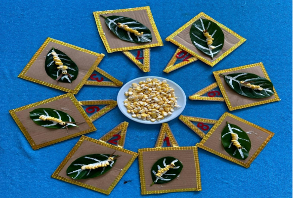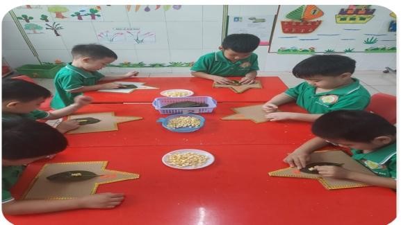 Hình ảnh: Trẻ tạo hình con sâu từ hạt bắp