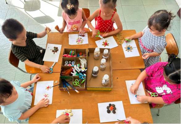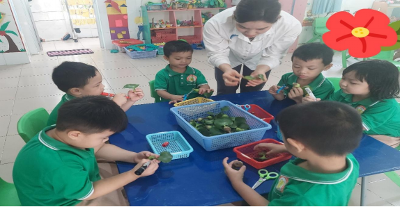 Hình ảnh: Trẻ tạo hình hoa từ các nguyên vật liệu thiên nhiên